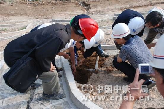 當(dāng)日下午,鐵道部建設(shè)司工程處副處長(zhǎng)杜永昌、鐵道部安全質(zhì)量監(jiān)督總站安全處副處長(zhǎng)李體存、京滬鐵路公司高級(jí)工程師南學(xué)文,在西平鐵路公司副指揮長(zhǎng)秦瑞耀、總工程師張晟,中鐵一局集團(tuán)公司副總工程師、西平鐵路常務(wù)副指揮長(zhǎng)黃釗的陪同下,對(duì)跨銀武高速馬屋80米鋼桁梁特大橋工地、南石窟寺大段路基工地進(jìn)行了認(rèn)真檢查。 在跨銀武高速馬屋80米鋼桁梁特大橋工地,檢查組聽(tīng)取了指揮部總工程師賈清江的匯報(bào),詳細(xì)檢查了特大橋墩身質(zhì)量,跨高速公路的安全防護(hù),隨機(jī)抽查了各種內(nèi)業(yè)資料。李體存對(duì)中鐵一局西平鐵路制作的工藝流程卡、現(xiàn)場(chǎng)施工一本通很感興趣,認(rèn)真翻閱。李體存對(duì)黃釗說(shuō):“這座大橋是新設(shè)計(jì),采用了新工藝,一定要干好。” 檢查組驅(qū)車60余公里,來(lái)到南石窟寺大段成型路基現(xiàn)場(chǎng)。在國(guó)道上行進(jìn)中,撲入眼簾的是線形流暢,舒展優(yōu)美,骨架連環(huán),精雕細(xì)鏤的大段高質(zhì)量路基及附屬工程,在綠樹(shù)的掩映下顯得格外壯觀美麗。 在高大寬闊的路基上,鐵道部安全質(zhì)量監(jiān)督總站安全處副處長(zhǎng)李體存隨意指定一處骨架護(hù)坡要求挖開(kāi)破檢。三公司項(xiàng)目經(jīng)理王金永立即按照要求,挖開(kāi)了這處骨架護(hù)坡框架立柱第二層左側(cè)。李體存下到破檢處親自丈量,量出實(shí)際厚度為52厘米,超出鐵道部相關(guān)規(guī)范2厘米。進(jìn)一步又量出了截水沿上沿的實(shí)際高度為11厘米,高出規(guī)范1厘米。李體存喜笑顏開(kāi),現(xiàn)場(chǎng)頓時(shí)響起一片喝彩聲。 走到南石窟寺特大橋的橋頭,看著線形優(yōu)美的節(jié)段拼裝箱梁,黃釗向杜永昌介紹了中鐵一局成功研發(fā)64米移動(dòng)支架造橋機(jī),克服節(jié)段拼裝曲線跨孔的困難,全線節(jié)段拼裝施工任務(wù)已經(jīng)順利完成。李體存高興地說(shuō)“你們第一次干節(jié)段拼裝箱梁,干得很好,以后全部應(yīng)當(dāng)由你們自己來(lái)干,就是要自主創(chuàng)新打破技術(shù)壟斷。”