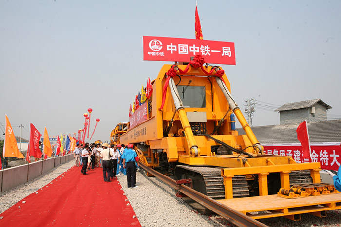 鋪軌機組采用單枕連續作業法,可以鋪設長度100~500m、軌重 ≤ 75kg/m長軌條組成的標準軌距無砟道床軌道,滿足一次鋪設無縫線路的要求。