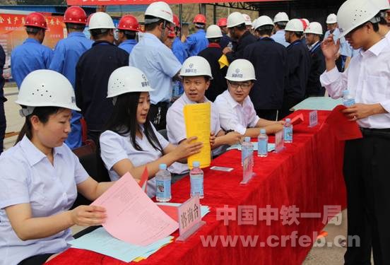 活動中,四公司靜靜鐵路項目部安質部長首先帶領各級領導和與會人員進行了安全宣誓,大家紛紛在印有“強化紅線意識,促進安全發展”的橫幅上進行了安全承諾簽名。隨后,項目部宣傳人員熱情地向工人代表們講解了安全生產法律法規以及相關知識,認真解答了代表們對建設過程中安全施工的相關問題,并為大家發放了《施工安全生產常識》宣傳資料300余份。