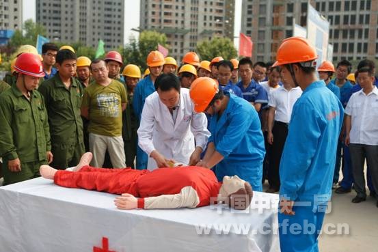 本次開展的應急救援演練活動主要針對工程易發多發的高處墜落、觸電、火災等事故開展。為了使演練效果逼真,西安消防支隊灞橋大隊浐灞中隊出動了消防車、中鐵一局醫院出動了急救車,演練使用了彩色煙霧彈制造火災事故現場濃煙效果。電務公司衛生所所長鞏平輝現場點評事故救援效果,并使用醫用假人道具進行現場演示。通過實地應急演練,使員工的安全知識和應急救援培訓相互融合,從而增強從業人員的安全防范意識,提高防災、避災和自救、互救能力。