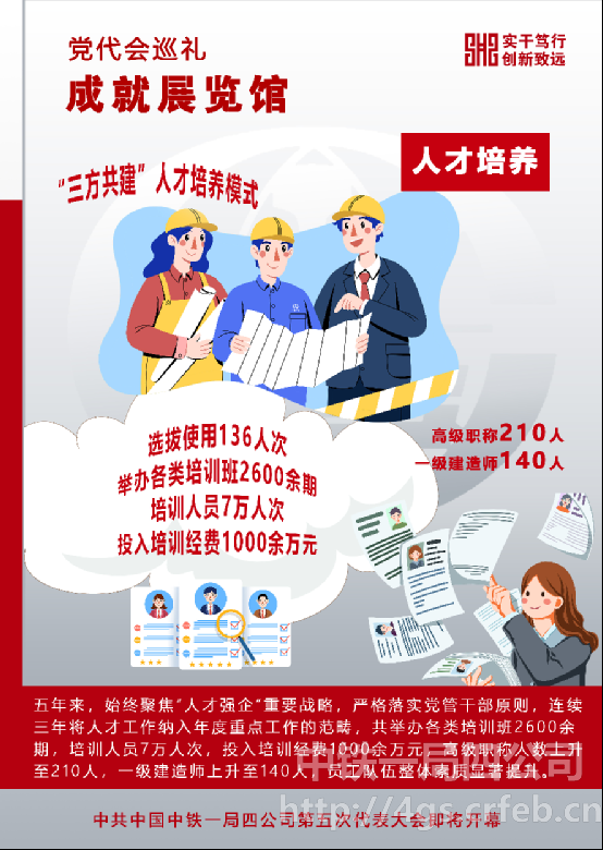 五年來(lái),四公司堅(jiān)持德才兼?zhèn)洹⒁缘聻橄鹊挠萌藰?biāo)準(zhǔn),持續(xù)開(kāi)展后備干部公開(kāi)選拔,舉行了四次后備干部考試,選拔使用136人次,有效激發(fā)了干部隊(duì)伍活力;加大人才引進(jìn)、管理和培訓(xùn)工作力度,共舉辦各類(lèi)培訓(xùn)班2600余期,培訓(xùn)人員7萬(wàn)人次,投入培訓(xùn)經(jīng)費(fèi)1000余萬(wàn)元,高級(jí)職稱(chēng)人數(shù)上升至210人,一級(jí)建造師上升至140人,員工隊(duì)伍整體素質(zhì)顯著提升。
