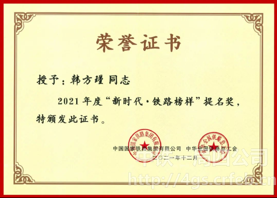 “新時(shí)代·鐵路榜樣提名”榮譽(yù)證書