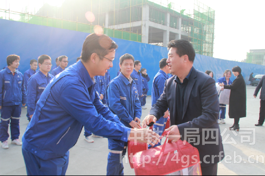 王力為項(xiàng)目職工發(fā)放慰問品