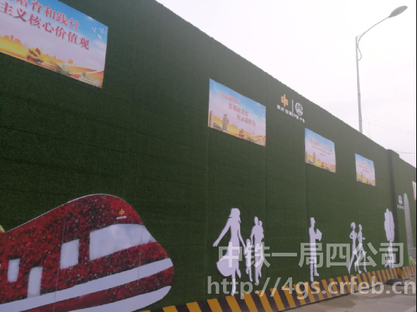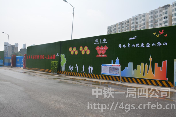 項目部的工點都處在繁華街區,又是挨著鄭州火車站,在還沒有建點之前,建設方就對文明施工和形象展示做出了明確要求,提出檔次和標準都不能低,既要有傳統更要有創新,特別是對火車站的工地和項目部駐地要重點打造。項目黨支部書記樊榮說:形象展示既是業主的要求,更是我們企業的需要,這是宣傳中鐵一局品牌,彰顯企業良好形象的大好機會。怎么才能在傳統的基礎上實現創新,樊榮這個搞工程技術出身的支部書記可是沒少動腦筋,對施工圍檔全部采用仿綠草皮全包,對文化墻進行精心設計制作,展示內容豐富,標識醒目大氣,給市民帶來了強烈的視覺沖擊。