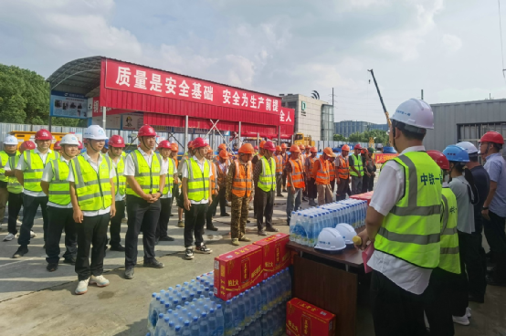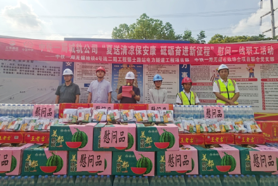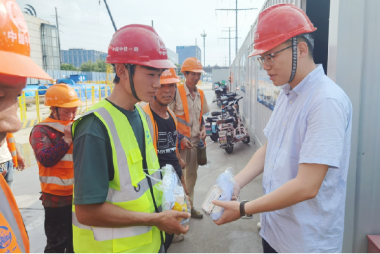 與會領導共同為一線作業工友送去了西瓜、鹽汽水等清涼物資及藿香正氣水、人丹等防暑禮包,將關懷送到了每個工友的手中。
