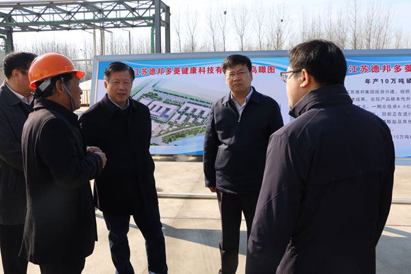 3月8日上午,市委常委、市長方偉攜市委秘書長韓尚富、市發(fā)改委、市工信局、市自然資源和規(guī)劃局、市生態(tài)環(huán)境局主要負責人及東海縣領導相關領導一行蒞臨江蘇德邦多菱健康科技有限公司廠區(qū),督查市級重點項目推進工作,并與集團公司董事長趙祥海進行親切交談。在聽取集團公司董事長關于產(chǎn)業(yè)布局、項目建設和經(jīng)營效益等相關情況匯報后,方偉勉勵企業(yè)要堅定發(fā)展信心、樹立高遠志向,大力推進創(chuàng)業(yè)創(chuàng)新,頑強拼搏,不懈努力,推動企業(yè)做大做強,力爭項目早日建成投產(chǎn),為地方經(jīng)濟發(fā)展再做新貢獻。他強調(diào),東海縣相關部門要進一步加大幫扶企業(yè)力度,抓緊落實企業(yè)相關手續(xù)的辦理,推動有關項目早日建成投入運行。同時他也表示,將抓緊推動德邦老廠區(qū)地塊的掛牌出讓工作,為德邦的整體搬遷項目建設提供支持。