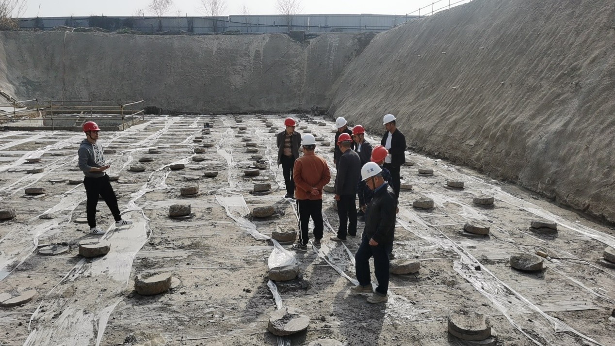 202339日上午9時,建設單位安徽同旅置業有限公司、監理單位安徽三友建設工程項目管理有限責任公司、施工單位江蘇永超建設有限公司、勘查單位安徽省綜建勘察設計院有限公司、設計單位連云港市建筑設計研究有限責任公司及經開區建設局質監站等有關負責人及技術人員到場對3#4#5#樓基槽進行現場驗收。檢查坑底土層是否與勘察、設計資料相符,是否存在填井、填塘、暗溝、墓穴等不良情況。經檢查,基坑及CFG樁位置、平面尺寸、基底絕對高程和相對標高符合設計要求。