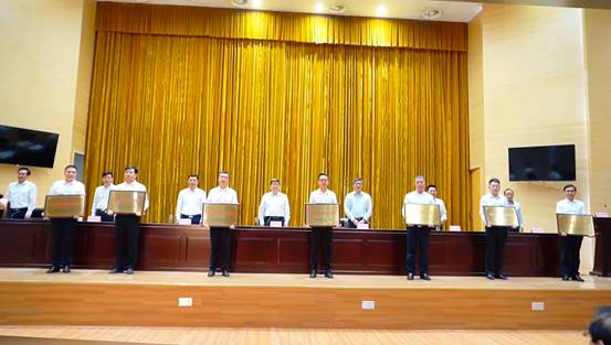 1012日下午,2022淮南100強企業發布會在山南政務大廳舉行。淮南市委書記任澤鋒出席并為代表企業授牌。市委常委、常務副市長孫良鴻主持,市領導宋立敏、沈斌、李國利、李大松及2022淮南100強榜單企業代表出席。淮南市企業(企業家)聯合會會長韓家章致發布辭。安徽德邦公司黨總支書記劉默海參加此次會議并上臺領取獎牌。