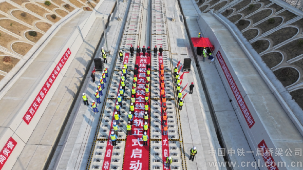 潘小虎在致辭中表示,中鐵一局全體建設者迎難而上、風雨兼程,克服了一系列挑戰,最終迎來長鋼軌鋪設的關鍵節點,向著全線貫通邁出了堅實一步。在新的起點上,全體建設者將乘勢而上、聚力攻堅,繼續發揚“誠信創新 永爭一流”企業精神,進一步優化資源配置,強化安全質量管控,全力推進剩余工程,穩步高效完成長鋼軌鋪設任務,向建設單位和江西人民交出一份滿意的答卷。