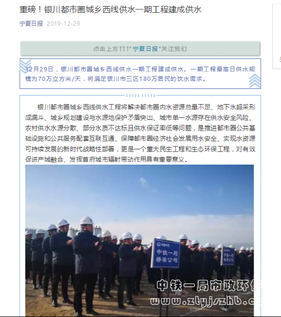 寧夏日報報道:銀川都市圈城鄉西線供水工程項目通水