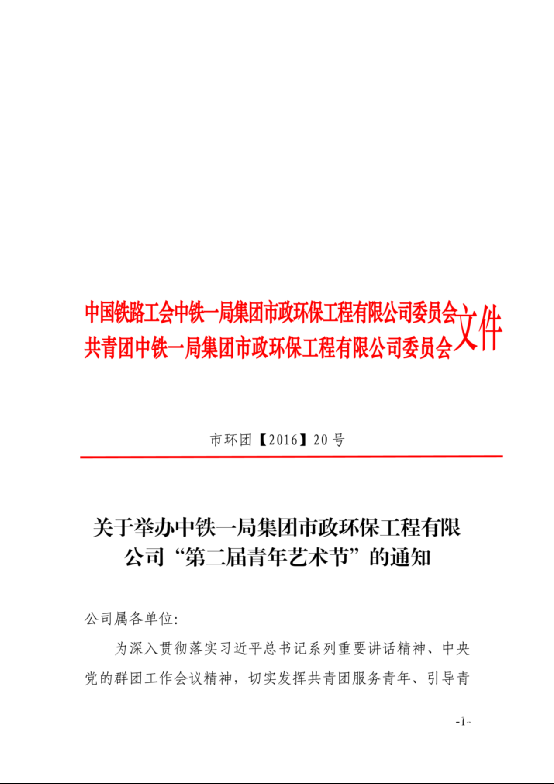 關(guān)于舉辦中鐵一局市政環(huán)保工程有限公司“第二屆青年藝術(shù)節(jié)”的通知
