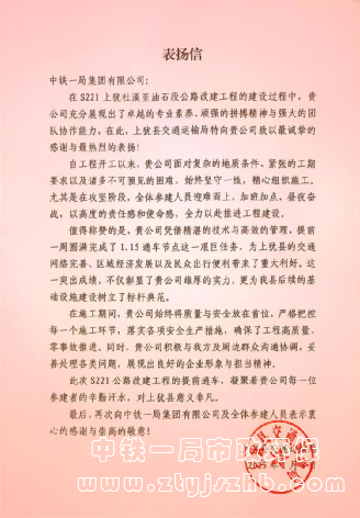 S221公路提前通車獲表?yè)P(yáng)