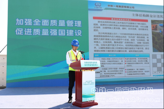 昆明市第十五水質凈化廠項目建設單位、中鐵開發投資集團公司副總工程師、中鐵碧源水務昆明有限公司董事長鄧成宏致辭,昆明市建設工程質量安全監督管理總站副站長盛錦松對全市住建領域質量管理提升工作作安排部署;劉玉林、郭春寶分別講話,陳斌宣布質量月活動正式啟動。
