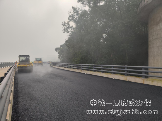 本次施工路段全長約1.4公里,采取全幅攤鋪工藝,有效減少縱向接縫,確保路面整體平整度。施工期間,項目團隊克服了復雜天氣與連續作業的雙重挑戰。清晨時分,現場常被濃霧籠罩,能見度較低,但攤鋪作業仍按計劃持續推進,施工人員在霧中密切配合,保障工序銜接有序。為全力推進工程進度,團隊還科學組織了夜間施工,在確保照明與安全的前提下,保持了施工節奏的連貫穩定。現場負責人帶班管控,對瀝青溫度、碾壓遍數與邊角處理等關鍵環節進行嚴格把關,保障了路面成型均勻密實、質量達標,為后續順利通車奠定了堅實基礎。