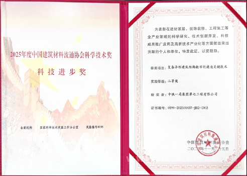 近日,中鐵一局七公司主導(dǎo)完成的“復(fù)雜異形建筑結(jié)構(gòu)數(shù)字化建造關(guān)鍵技術(shù)”科研項(xiàng)目,憑借鮮明的技術(shù)創(chuàng)新性與扎實(shí)的實(shí)踐應(yīng)用價(jià)值,榮獲2025年度中國(guó)建筑材料流通協(xié)會(huì)科學(xué)技術(shù)獎(jiǎng)科技進(jìn)步獎(jiǎng)二等獎(jiǎng)。