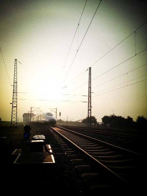 第一名 西成客專項(xiàng)目部何艷云《晨光中的動(dòng)車》