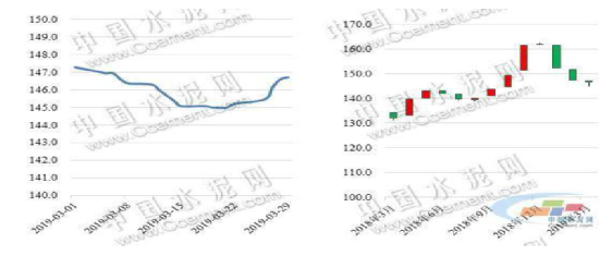 圖1:3月全國水泥價格指數CEMPI 圖2:水泥價格指數(CEMPI)K線圖